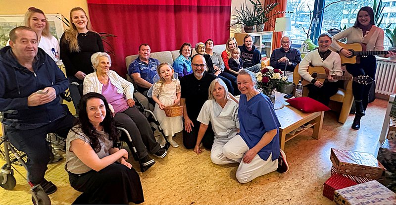 Gehfähige Patientinnen und Patienten, Angehörige sowie Mitglieder des Pflegeteams trafen sich im weihnachtlich dekorierten Aufenthaltsraum der Station, um der Musik der „Thalhauser Dirndl“ zuzuhören. Sandra und Julia Thalhauser sind in der Region bekannt für ihre schönen Stimmen, die bei Volksmusikveranstaltungen zu hören sind. Im Pfarrkirchner Krankenhaus begleiteten sie sich selbst auf der Gitarre und sangen bekannte Weihnachtslieder, die eine besondere Stimmung für die Patientinnen und Patienten schufen.