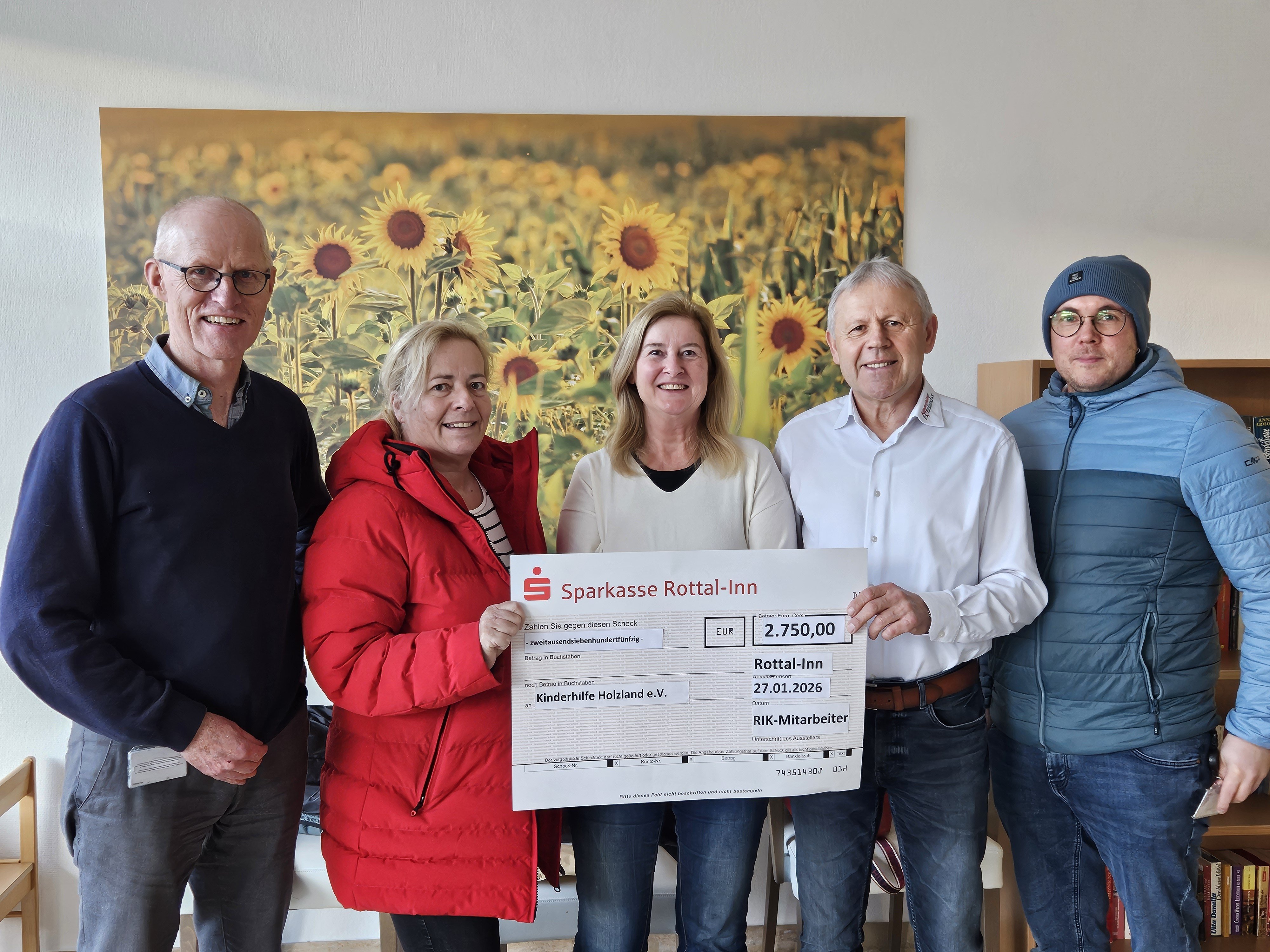 Die Mitarbeitenden der Rottal-Inn-Kliniken unterstützen seit 2013 die Aktivitäten der Kinderhilfe Holzland e.V. mit einer jährlichen Weihnachts-Spendenaktion. Nun konnten Personalratsmitglieder der Kliniken die stolze Summe von 2.750 Euro an den Vereinsvorsitzenden übergeben.